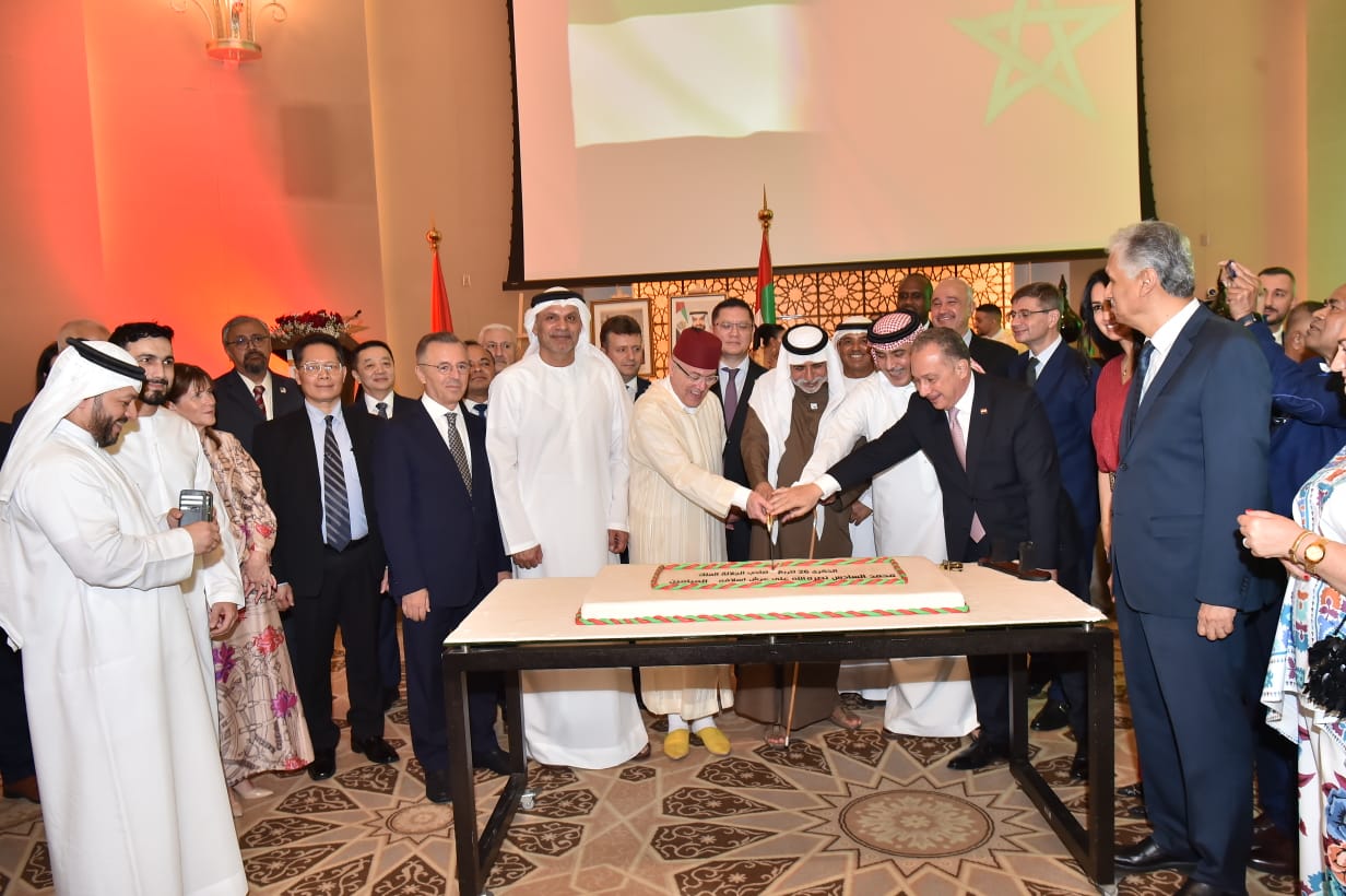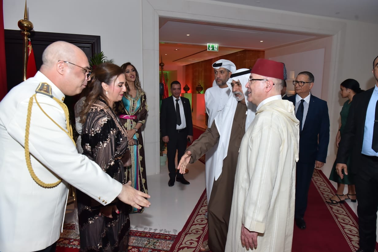 وشهد الحفل حضور معالي الشيخ نهيان بن مبارك آل نهيان، وزير التسامح والتعايش، الذي أضفى بمشاركته رمزية خاصة على هذه المناسبة الوطنية الغالية. وفي كلمته الترحيبية، عبّر سعادة السفير أحمد التازي، سفير المملكة المغربية لدى دولة الإمارات، عن بالغ شكره وامتنانه لمعاليه، مثمّناً حضوره الكريم ومشاركة نخبة من الشخصيات الإماراتية والدولية، إلى جانب أبناء الجالية المغربية المقيمة في الدولة.