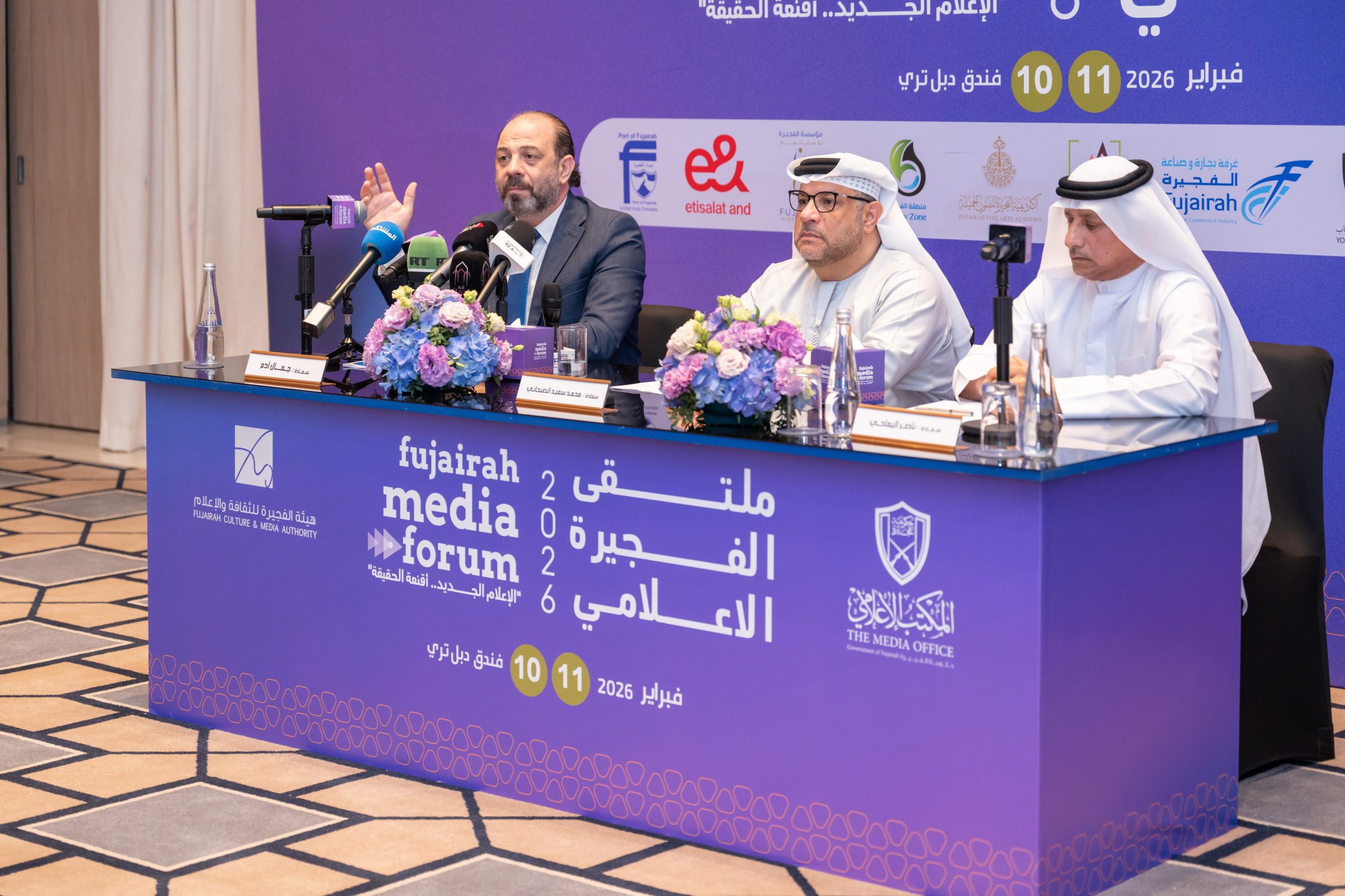 بدوره، أوضح سعادة جمال آدم أن الملتقى يهدف إلى فتح نقاشات معمقة حول قضايا الإعلام الجديد، وتأثير التقنيات الرقمية والذكاء الاصطناعي في صناعة المحتوى وتشكيل الرأي العام، مؤكداً حرص المكتب الإعلامي لحكومة الفجيرة على أن يكون الملتقى منصة تجمع صناع القرار والخبراء والإعلاميين، لتبادل الخبرات، وبلورة رؤى عملية تسهم في تعزيز المصداقية ومواجهة مظاهر التضليل الإعلامي.